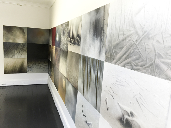 The technique I have been using is a modified version of the old masters. The meticulously layering of oil paint and white tempera assists to define the shape of the forms, as well as reflects light as in nature. This technique serves to create works which act as metaphors, alluding, through the subjects of grass, twigs, sand, stones, water, dust or mist, to day to day experiences. The works are a nexus between the immeasurable age of the natural world, and the fragility and transience of human perception on which that experience is dependent. The slow process of making my art allows new ideas to emerge. This interaction with material and the actual “doing”, leads to an enhanced understanding of the conceptual framework that propels the work.
