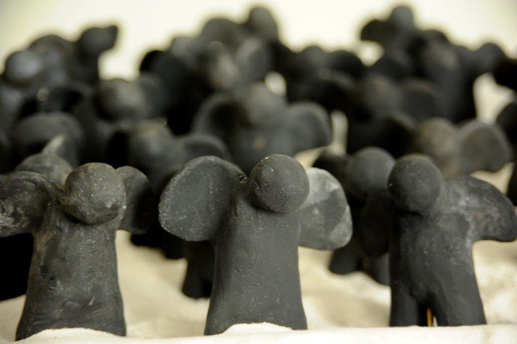 In the process of making “Random Moments” I felt an urge to engage with the material of the relics I saw, as well as the forces that would have acted upon them. I am now making ‘repository’ boxes which are contemplative dialogues between cultures and practices. In response to the warriors, I am creating an army of terracotta angels: the Chinese warriors function as guardians of souls, placed between this world and the afterlife. Not unlike angels which are God’s warriors and guardians of the soul.